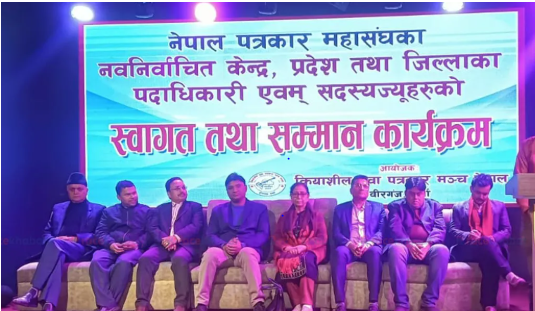 क्रियाशील युवा पत्रकार मञ्च नेपालले नेपाल पत्रकार महासंघमा निर्वाचित पदाधिकारी तथा सदस्यहरूलाई सम्मान गरेको छ । वीरगन्जको होटल त्रिशलामा बिहीबार आयोजना गरेको कार्यक्रममा पत्रकार महासंघको केन्द्र, प्रदेश र जिल्लामा निर्वाचित पदाधिकारी तथा सदस्यहरूलाई सम्मान गरेको हो ।